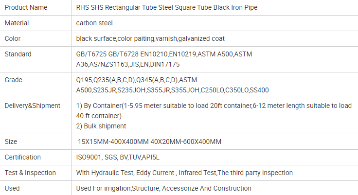Standard:GB/T6725 GB/T6728,EN10210.EN10219,ASTM A500,ASTM A36,AS/NZS1163,JIS EN DIN17175