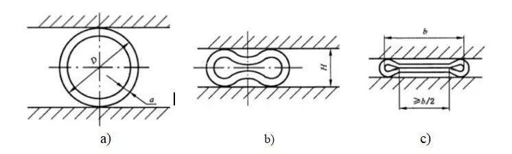 In the case of closed flattening, the width of the contact area on the inner surface of the specimen shall be at least half of the inner width b of the specimen after normal flattening.