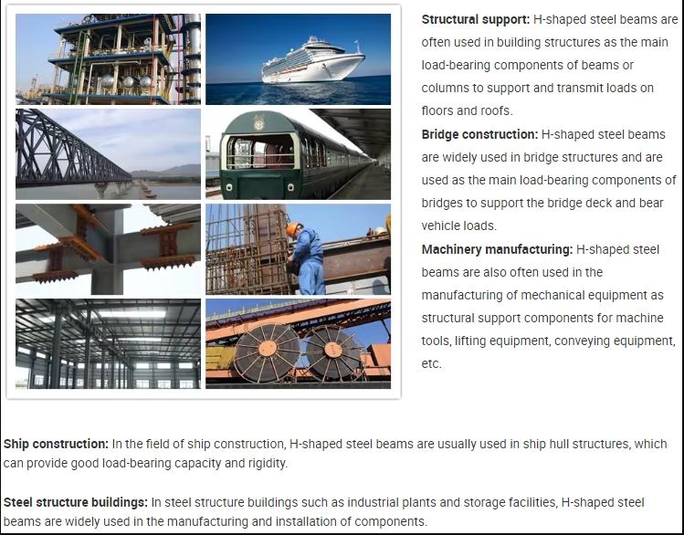 Diverse specificații: Grinzile H au diverse specificații, furnizăm tot felul de grinzi H standard, inclusiv: grinzi H standard americane, grinzi H standard australiene, grinzi H standard britanice și așa mai departe, care pot satisface nevoile diferitelor proiecte, inclusiv diferite înălțimi, lățimi și grosimi.