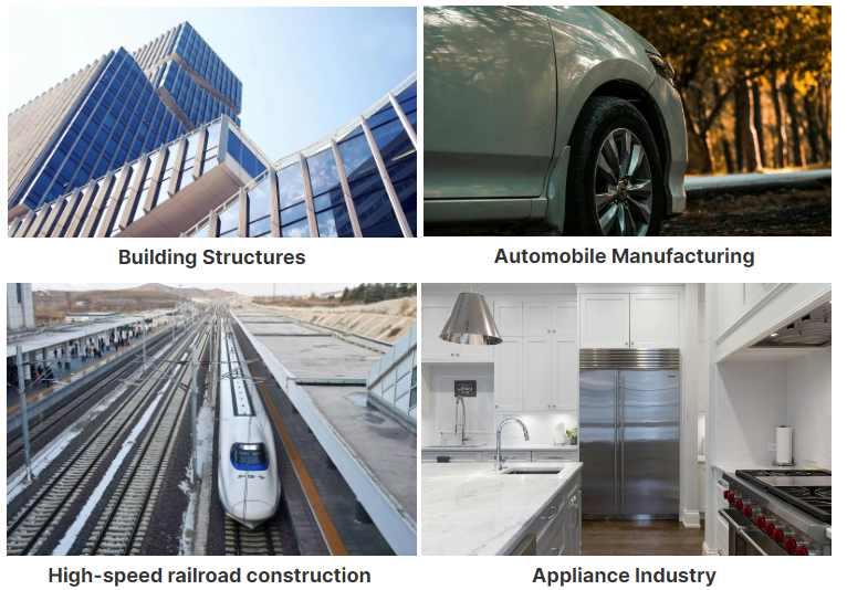| درخواست | عمارت جي تعمير، پل، فن تعمير، گاڏين جا حصا، هپنگ، هاءِ پريشر ڪنٽينر، فرش پليٽ فارم، وڏي جوڙجڪ اسٽيل وغيره |
